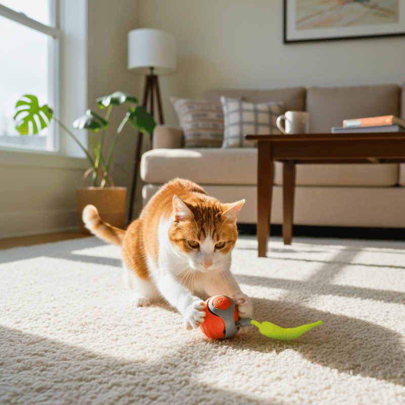 My cat usually gets bored fast, but this one keeps her moving every day. She chases it and never loses interest. Easily the best toy I’ve bought her.